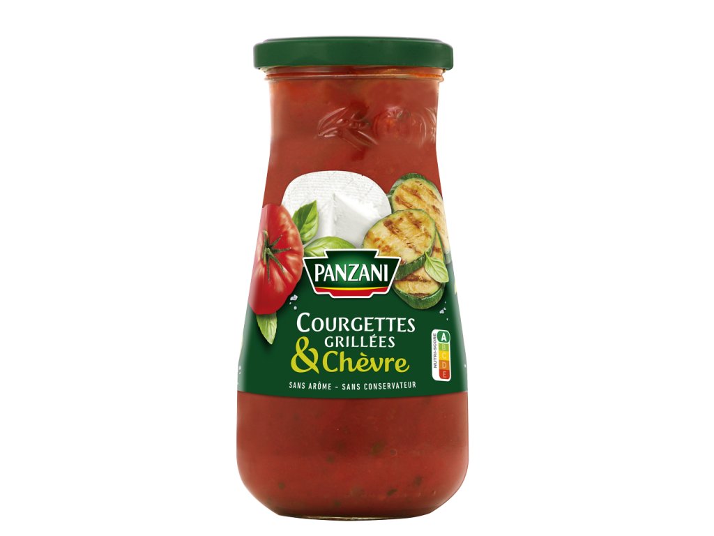 - Tepelně upravovaná hotová rajčatová omáčka s grilovanou cuketou a kozím sýrem, ochucená, sterilovaná