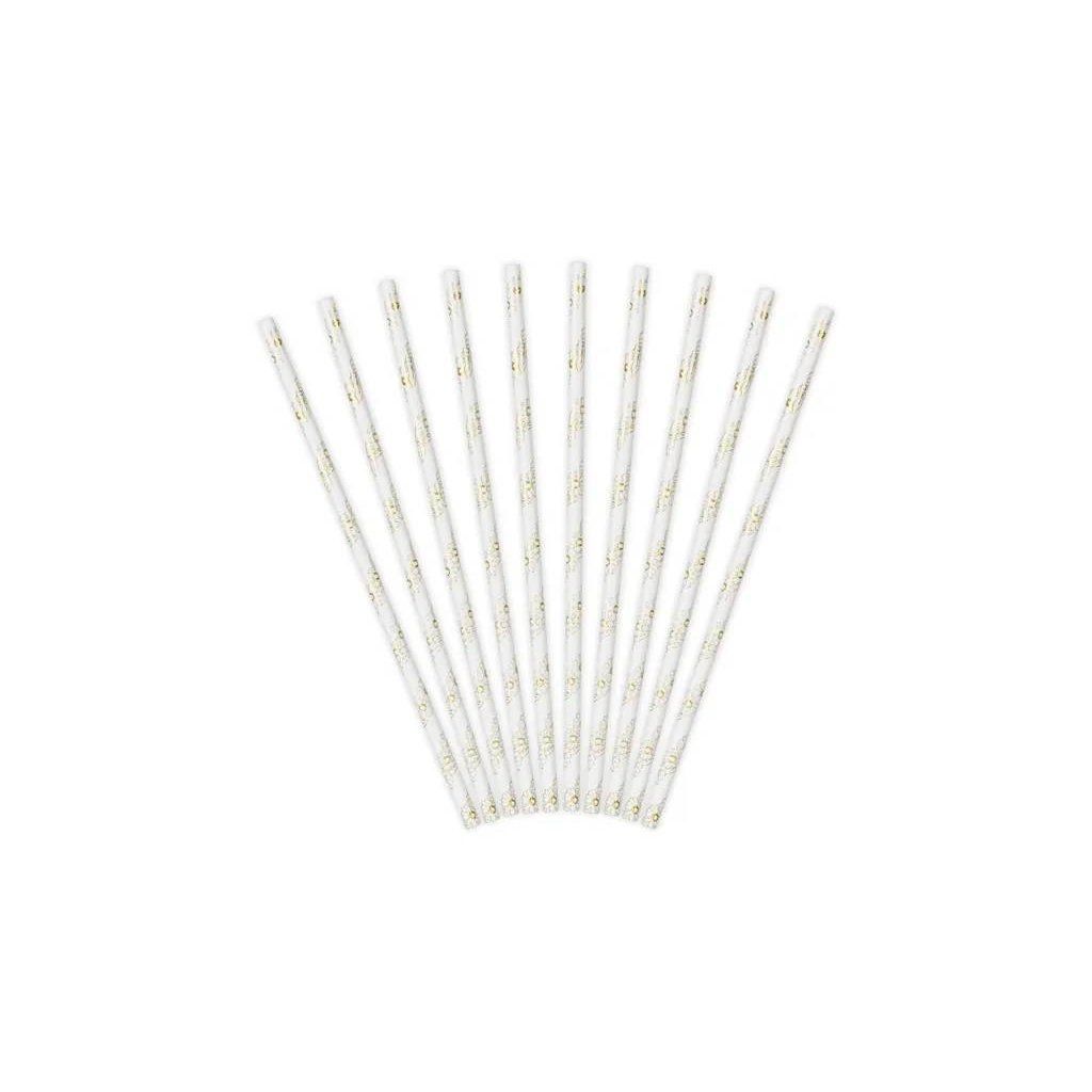 PartyDeco Papírová brčka bílá se zlatými květinami (10 ks) ▹ /BP