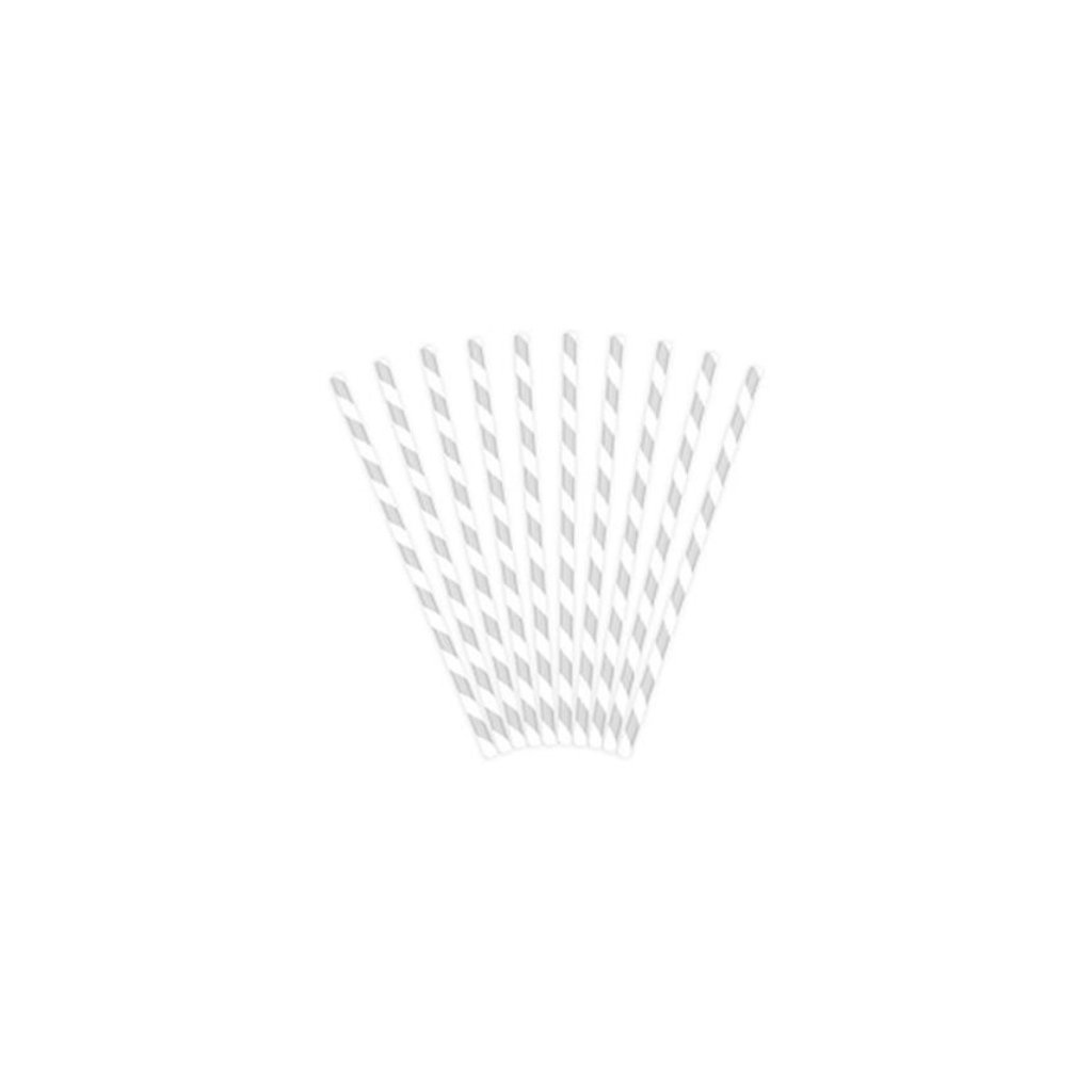 Papírová brčka stříbrno-bílá - 10 ks /BP