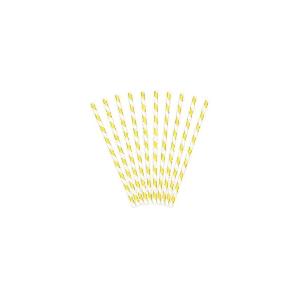 Pruhovaná papírová brčka v kombinaci žluté a bílé barvy rozzáří každý drink a skvěle ladí s letními, svatebními či narozeninovými oslavami. Hodí se pro dětské party, zahradní pikniky i tematické večírky. Jsou vyrobena z kvalitního papíru, který je pevný, ekologický a vhodný pro studené nápoje. Jsou skvělou alternativou k plastovým brčkům a navíc slouží jako krásná dekorace při servírování. Rozměry: délka cca 19,5 cmMateriál: PapírBarva: Žlutá, bíláBalení: 10 ksDoplňkové parametry