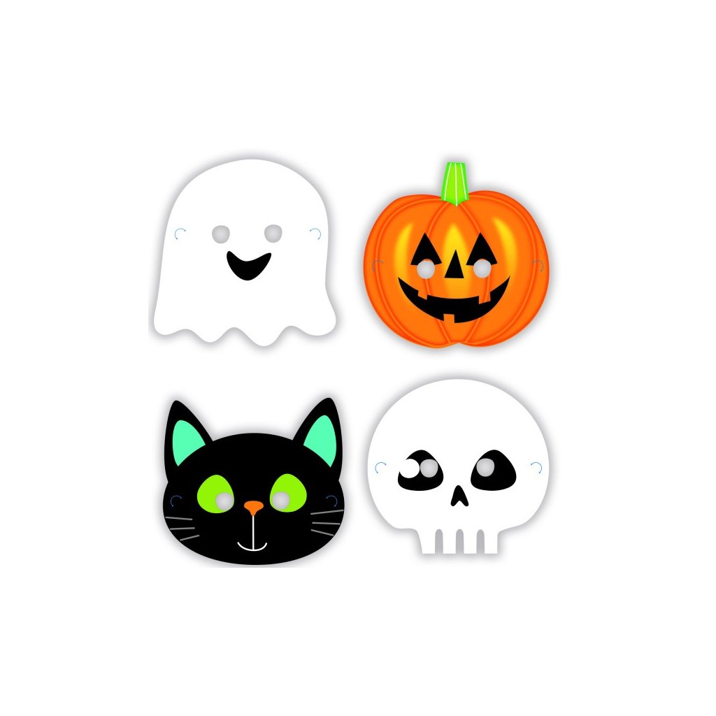 Papírové masky na halloweenský večer, vhodné na dětskou oslavu. Rozmšr: 16 x 23 cm. Počet: 8 ks.Doplňkové parametry