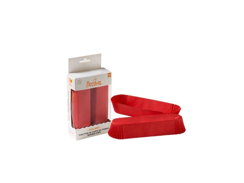 Cukrářské potřeby a suroviny pro sladké pečení.Produkt pro domácí cukráře: Papírové košíčky na eclair 135x33x28mm červené 60ks - Decora ,