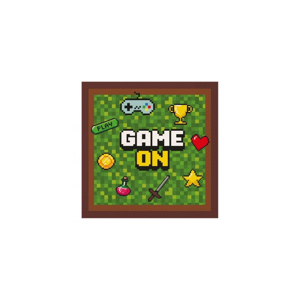 Tematické party ubrousky s herním motivem, k doplnění oslavy narozenin a stolu pro oslavence. Velikost: 33 x 33 cmBalení: 20 ksMateriál: papírDoplňkové parametry