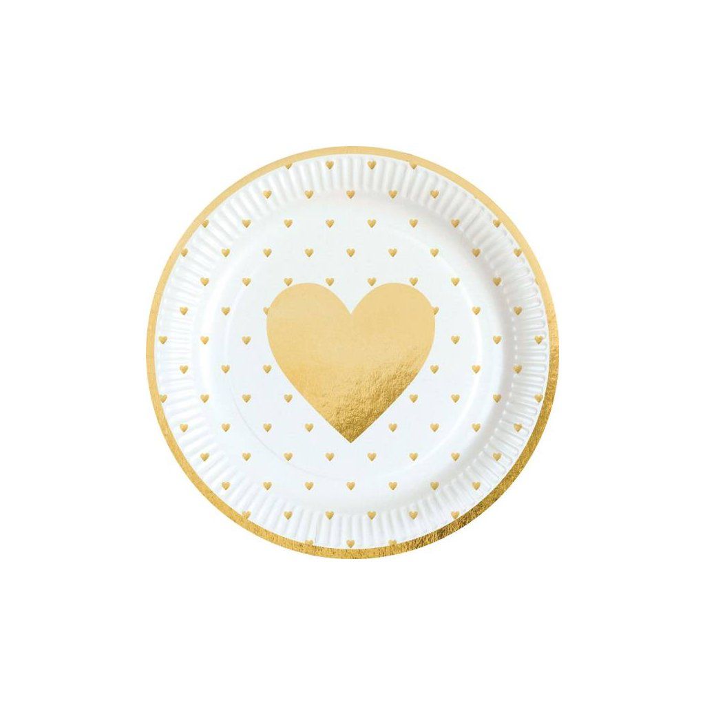 Papírový talíř na party s potiskem žlutých srdíček. V balení 8 ks.Doplňkové parametry
