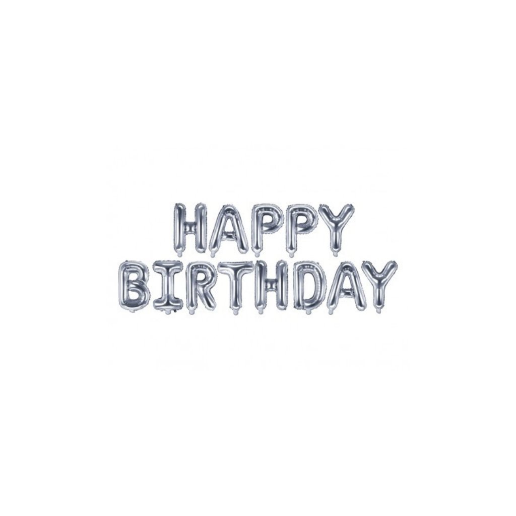 PARTY DECO Balónek 340 cm nápis "Happy birthday" stříbrný fólie 1 ks /BP