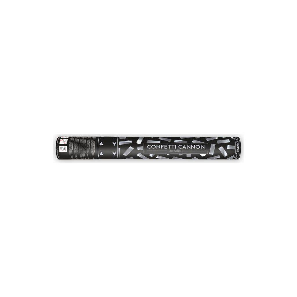 Konfetové dělo s balením papírových konfet ve stříbrném provedení.Doplňkové parametry