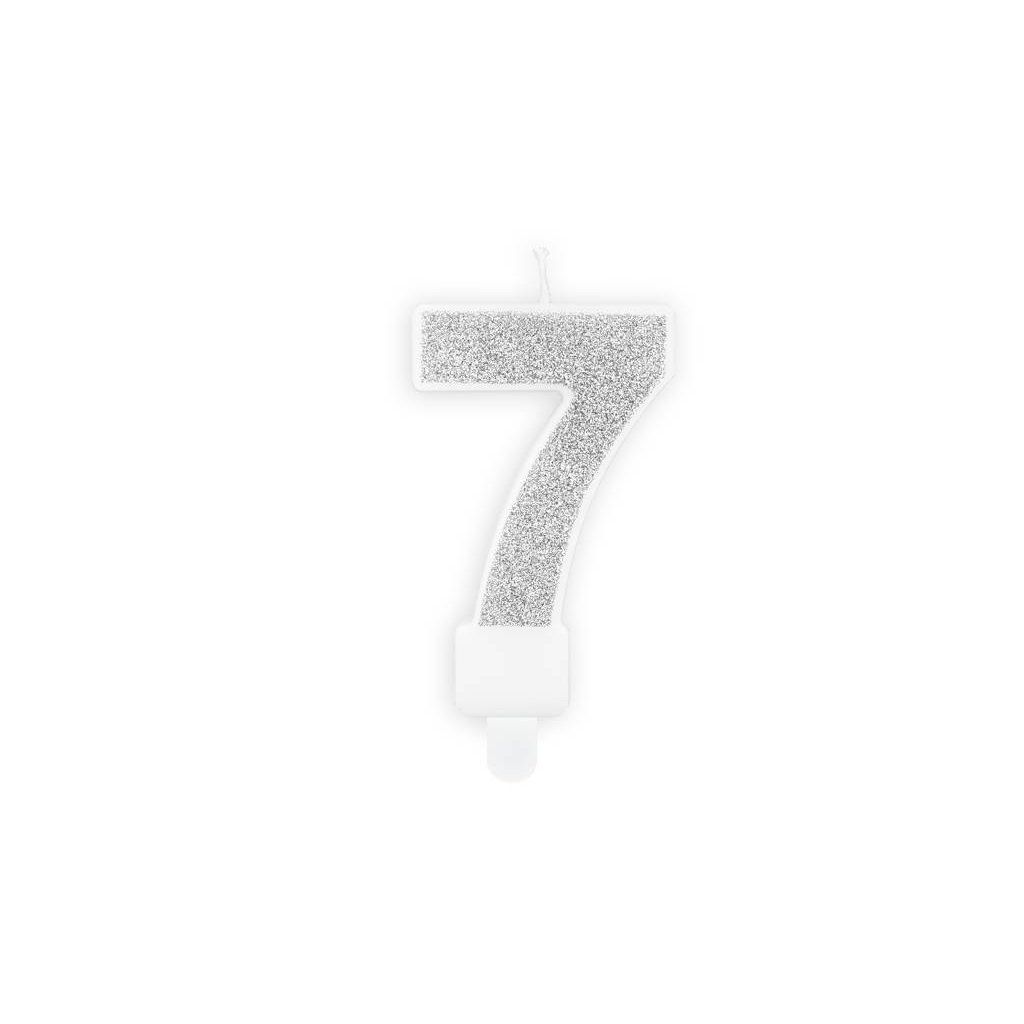 PartyDeco svíčka malá stříbrná číslo 7 ▹