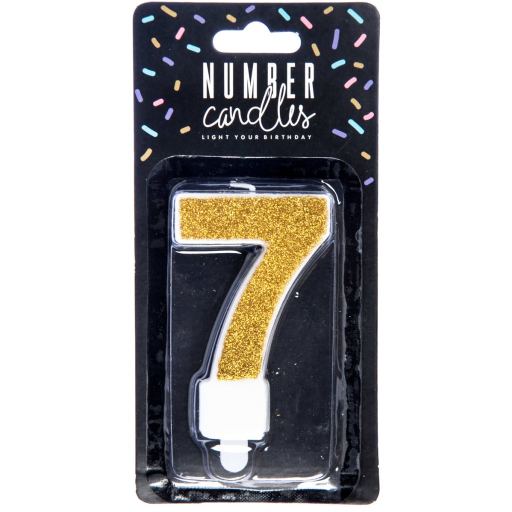 PartyDeco svíčka malá zlatá číslo 7 ▹