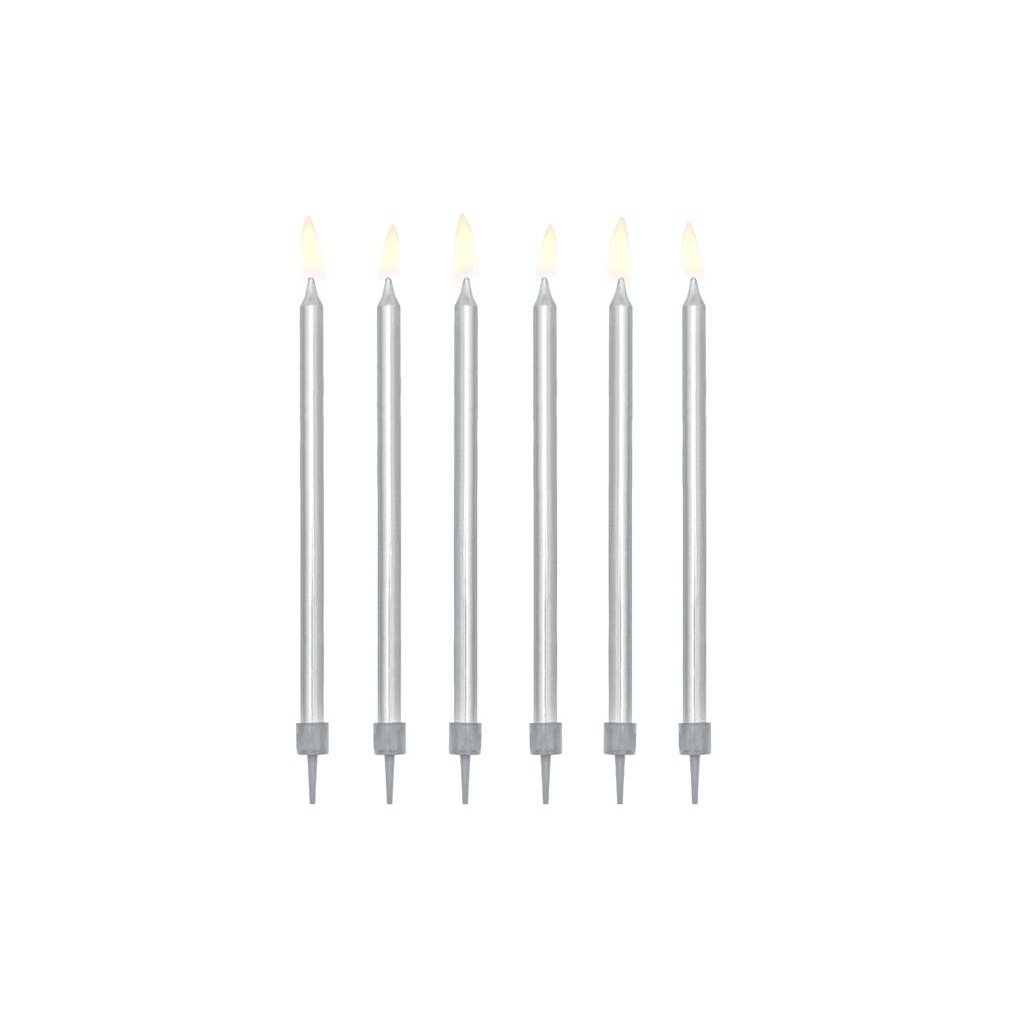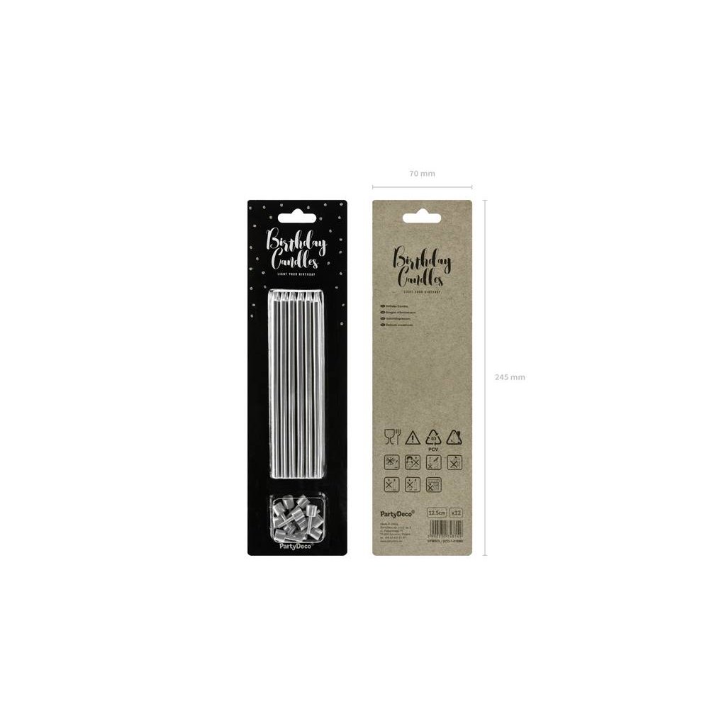 PartyDeco svíčky dlouhé stříbrné (12 ks) ▹