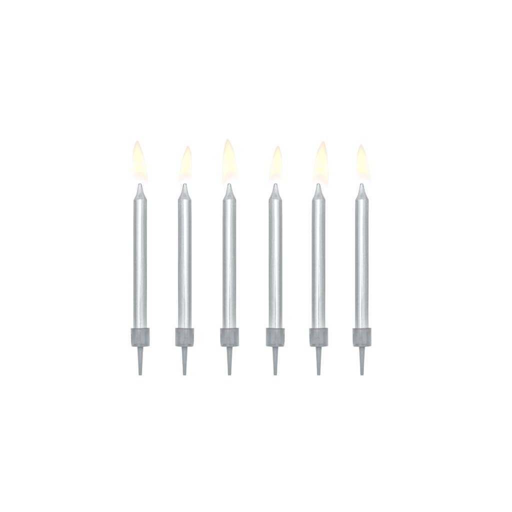 PartyDeco svíčky stříbrné (6 ks) ▹