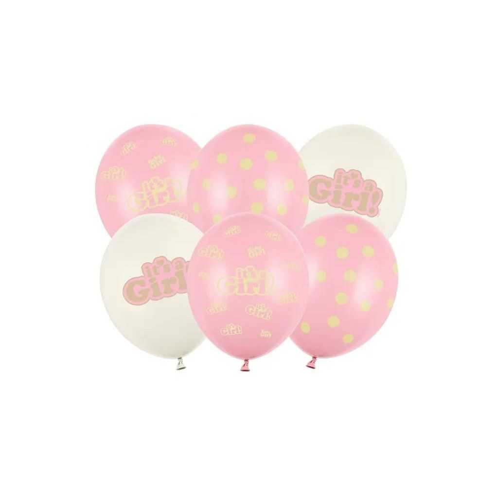 PartyDeco balónky krémové a růžové It's a Girl (6 ks) ▹