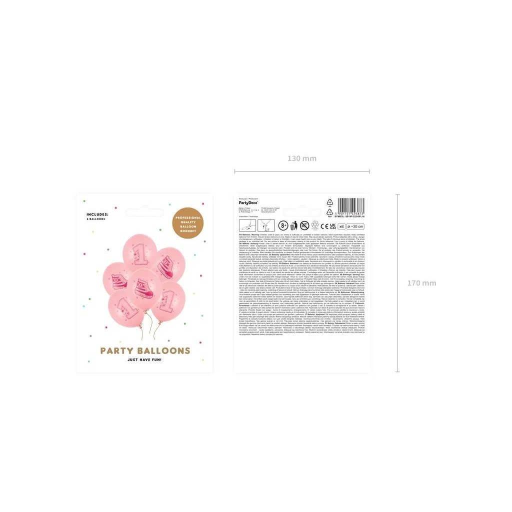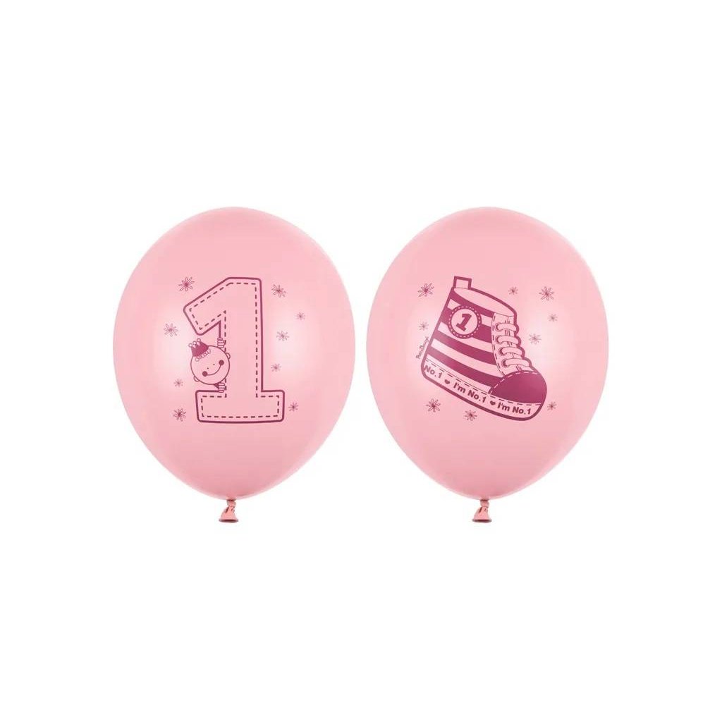 PartyDeco balónky růžové 1. narozeniny (6 ks) ▹