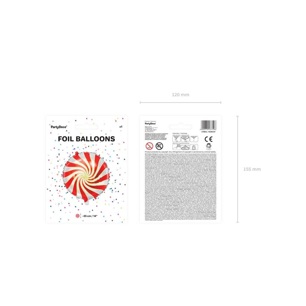 PartyDeco foliový balónek červeno-bílý Bonbon 35 cm ▹