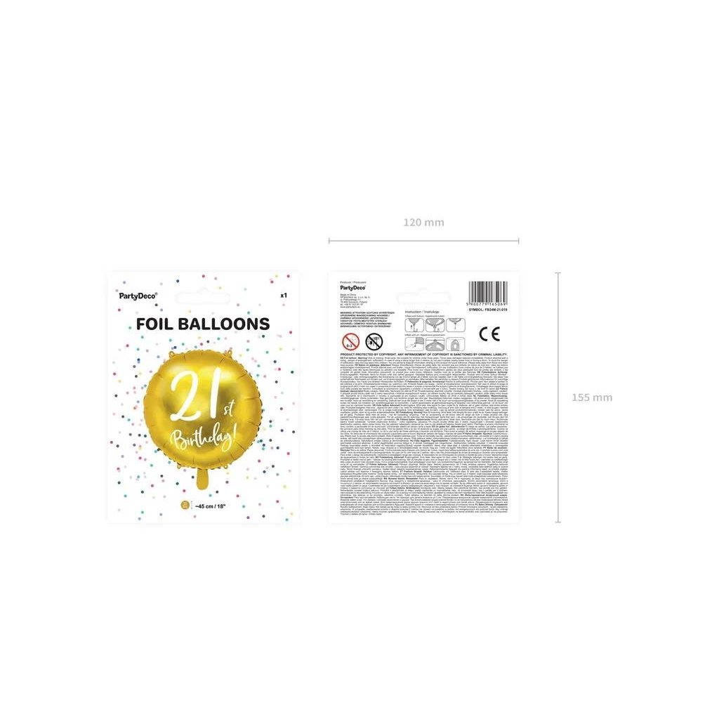 PartyDeco foliový balónek zlatý 21st Birthday 45 cm ▹