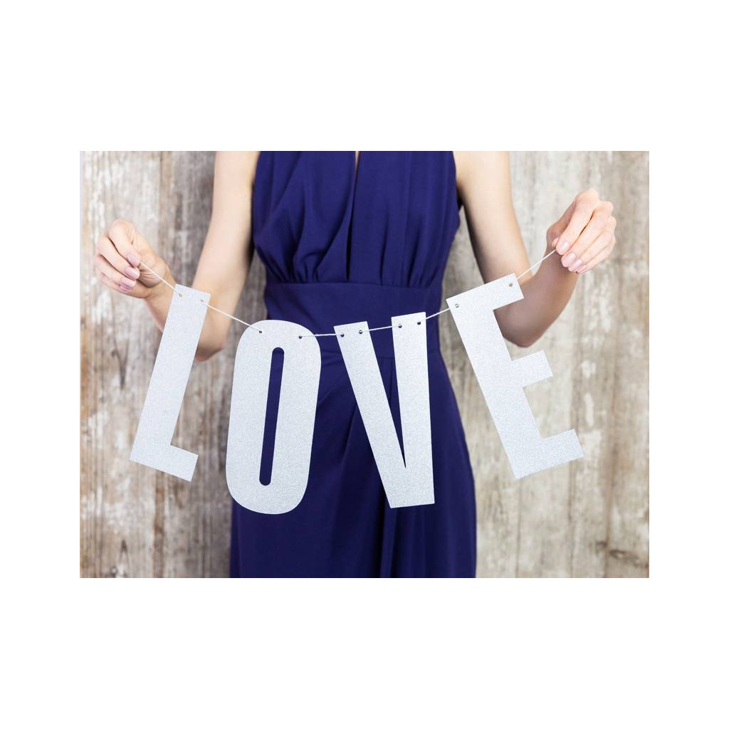 PartyDeco girlanda stříbrná Love ▹