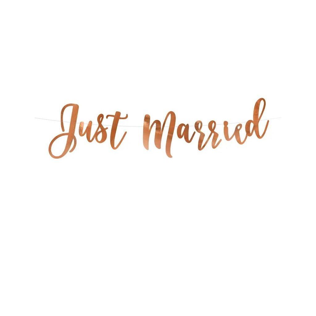 PartyDeco svatební girlanda růžovo-zlatá Just Married ▹