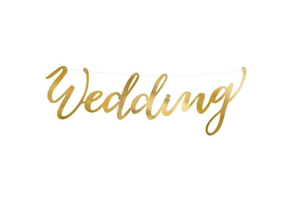 PartyDeco svatební girlanda zlatá Wedding ▹