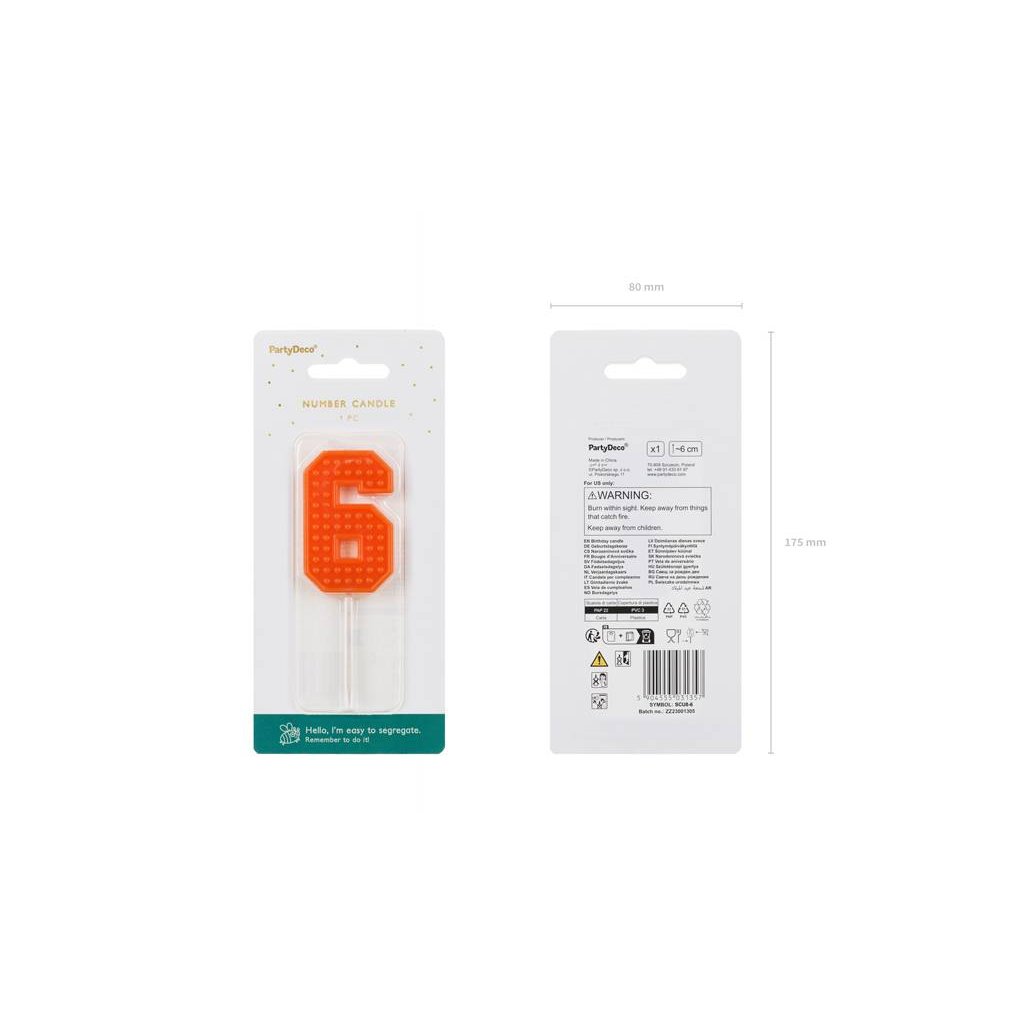PartyDeco svíčka červená na špejli číslo 6 ▹