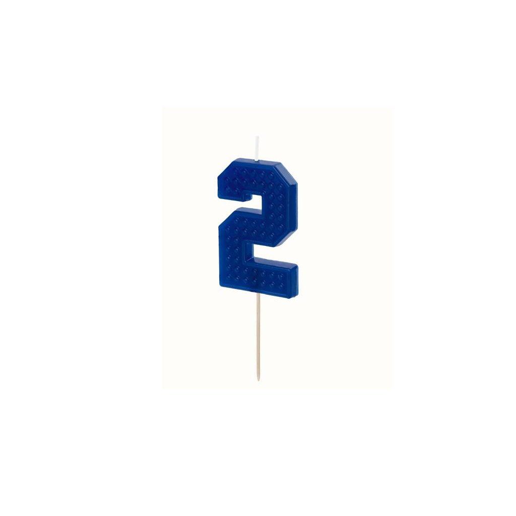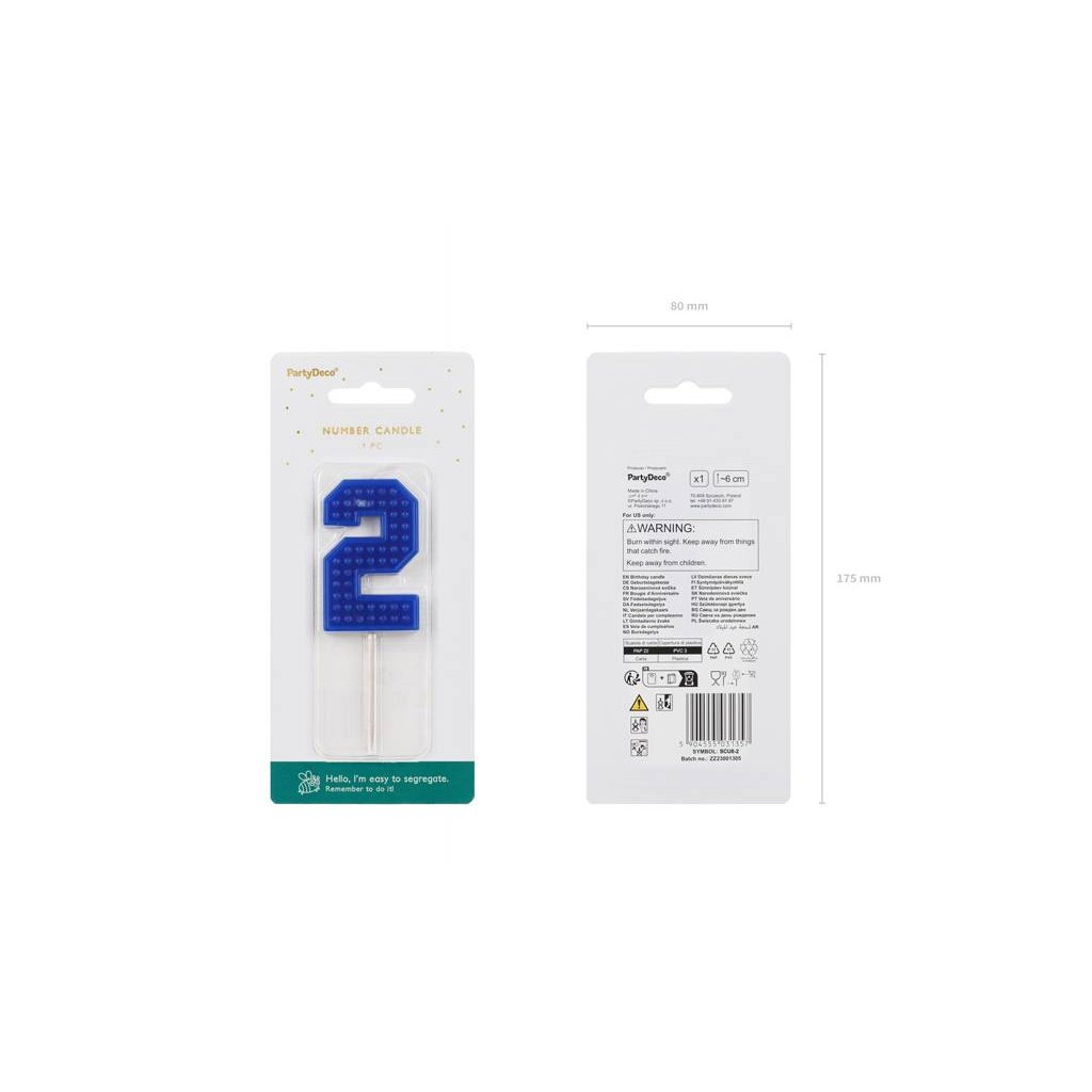 PartyDeco svíčka modrá na špejli číslo 2 ▹