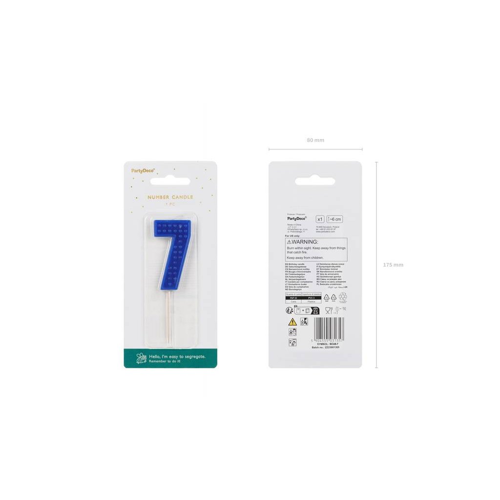 PartyDeco svíčka modrá na špejli číslo 7 ▹