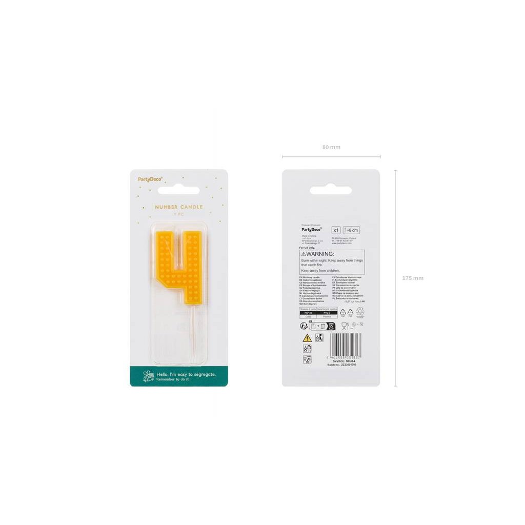 PartyDeco svíčka žlutá na špejli číslo 4 ▹