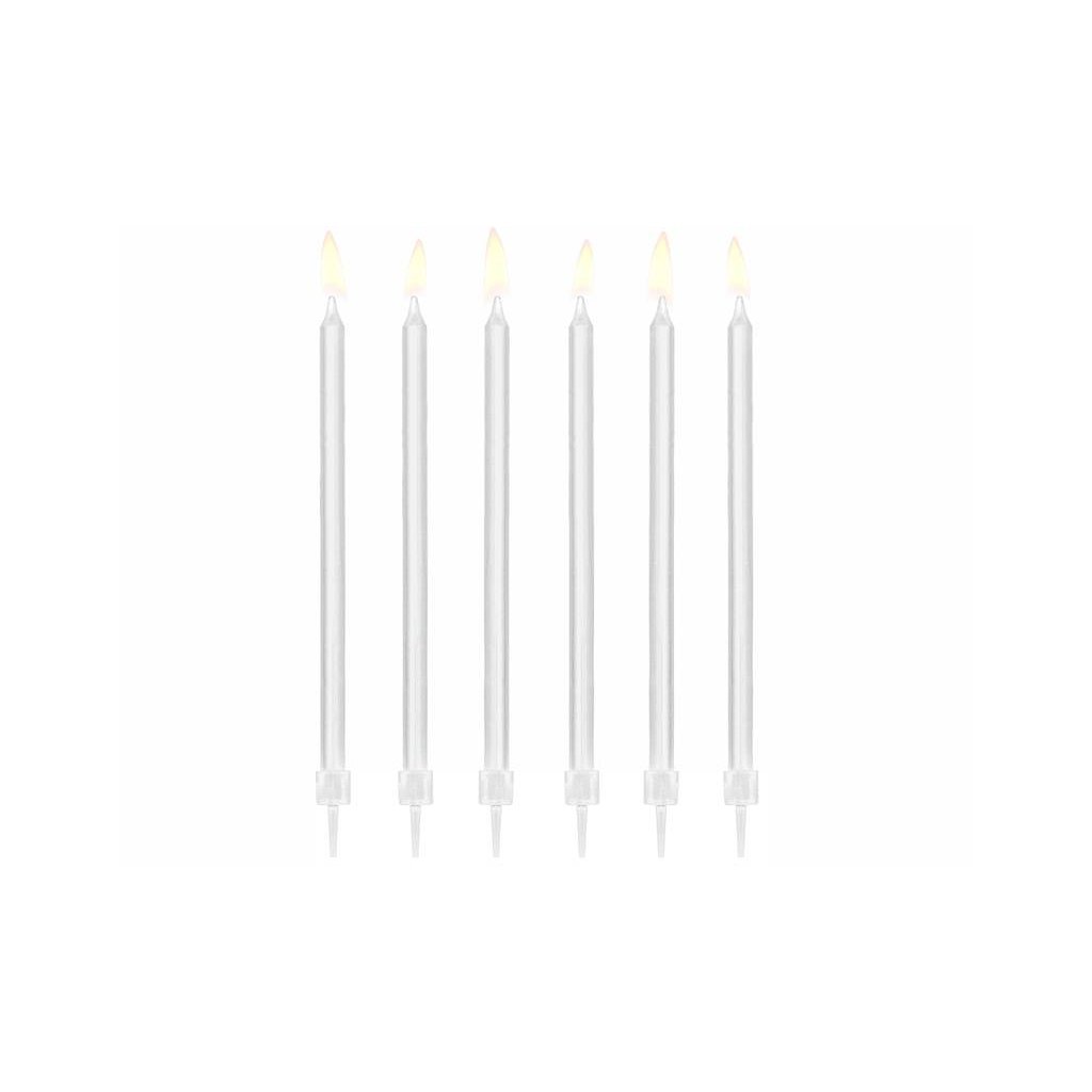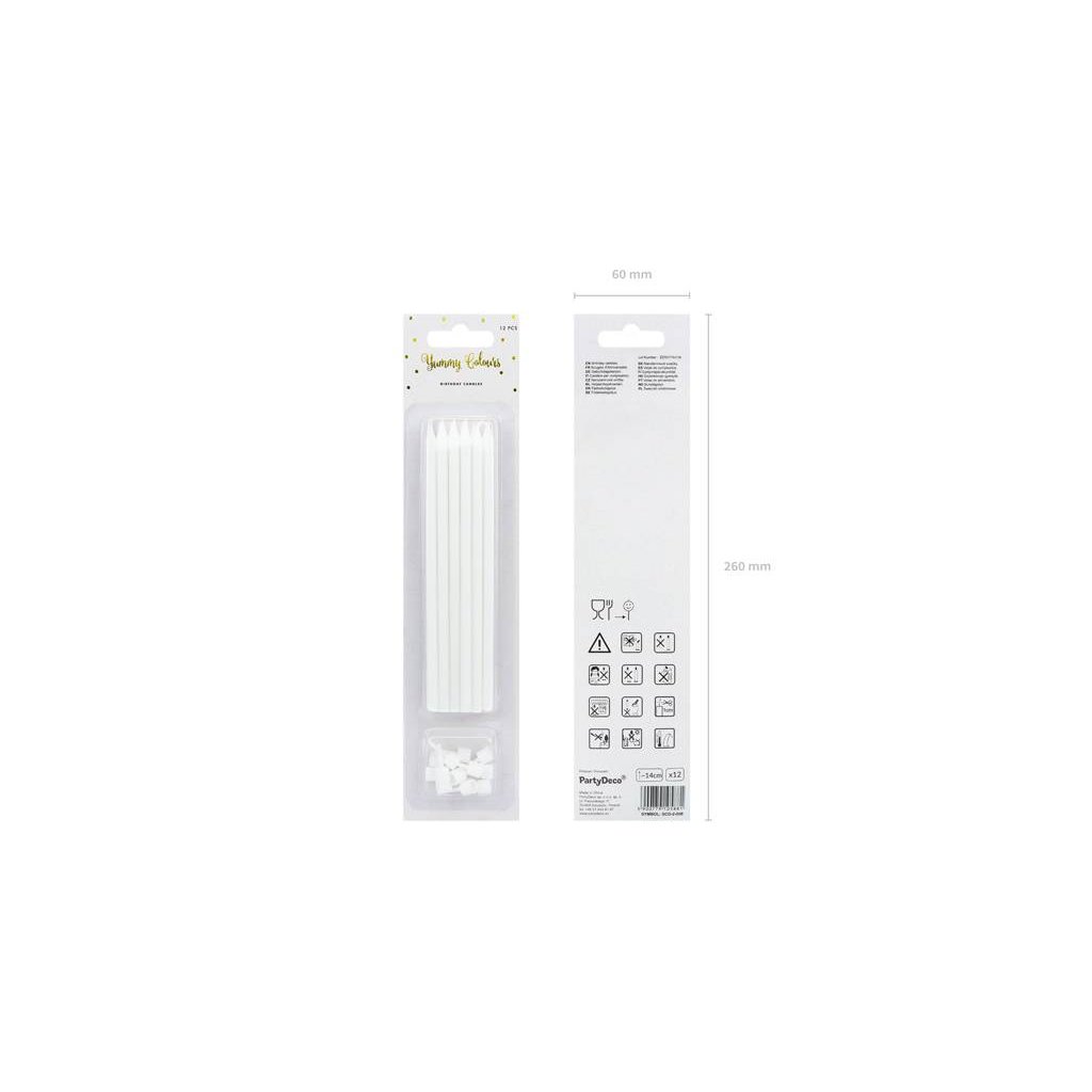 PartyDeco svíčky dlouhé bílé (12 ks) ▹