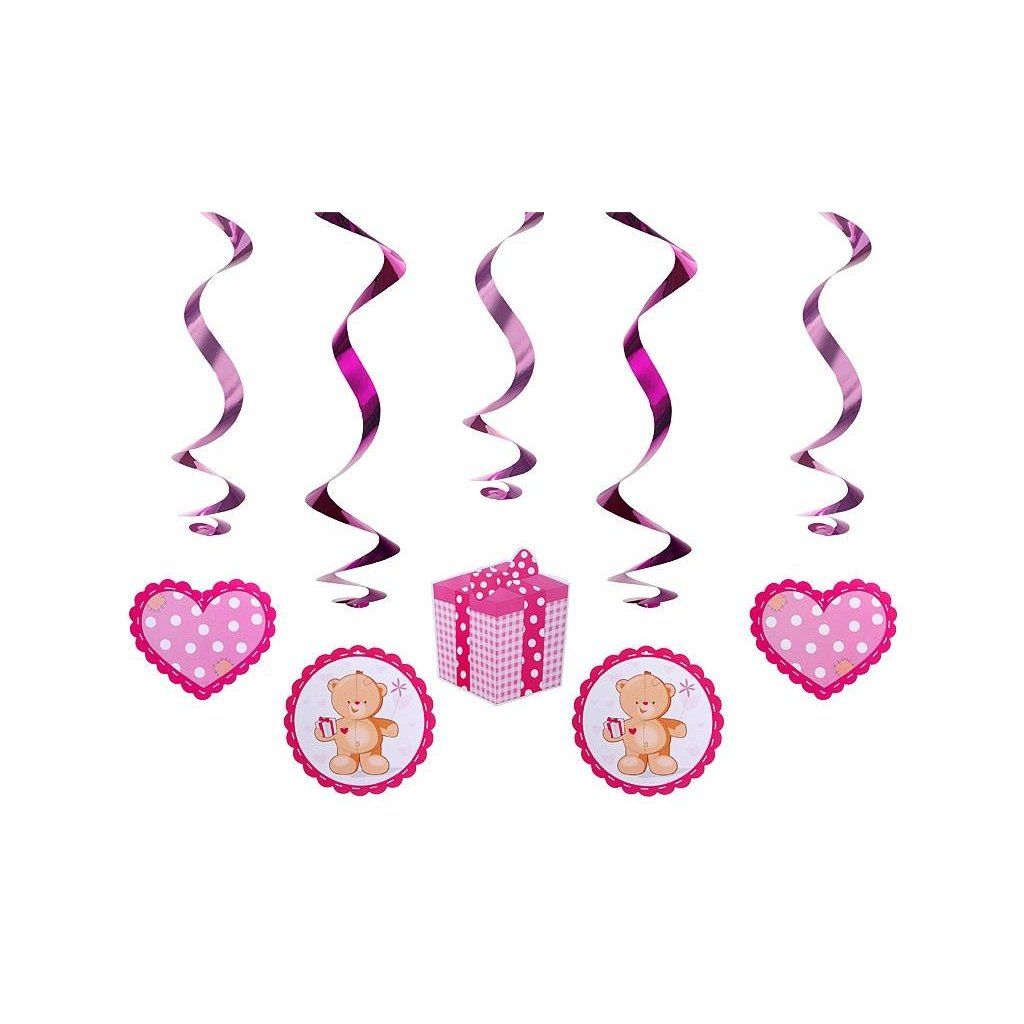 PartyDeco Závěsné spirály růžové s medvídkem (5 ks) ▹