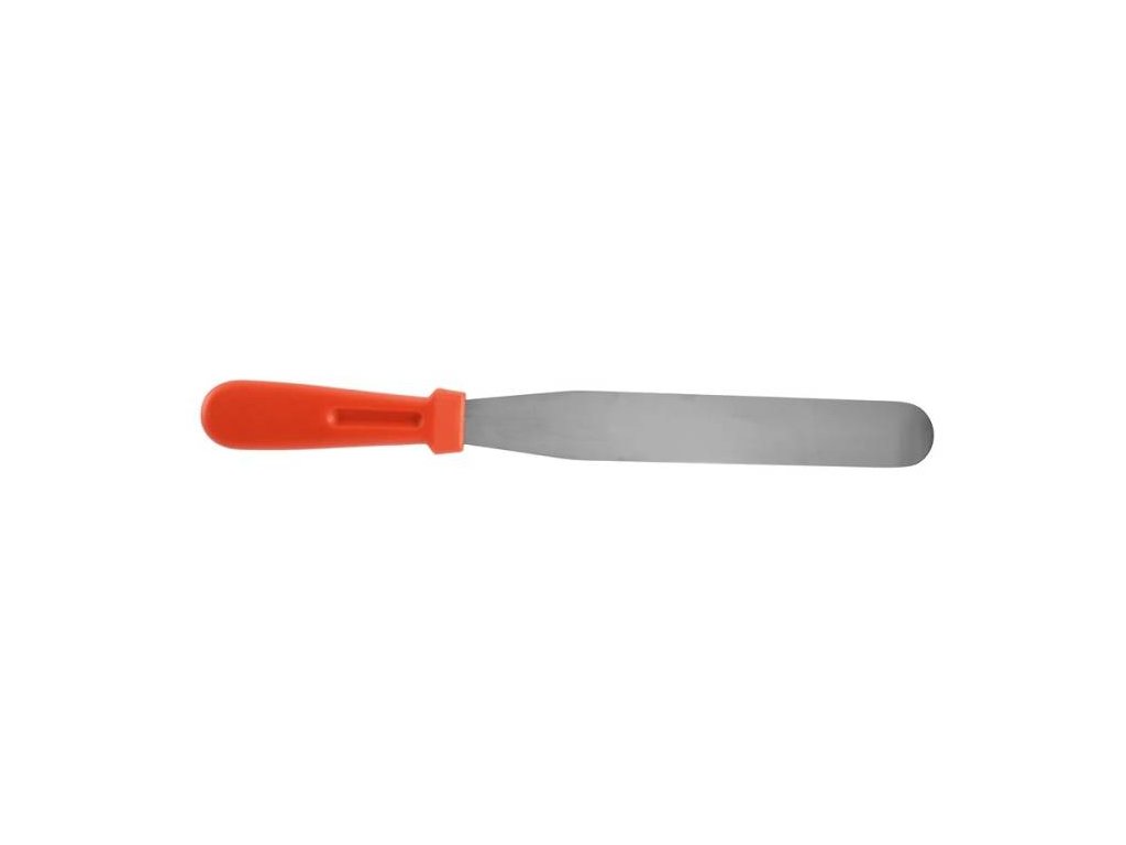 Cukrářská paleta je nepostradatelnou pomůckou pro každého cukráře, pekaře i kuchaře. Ideální pro roztírání krémů, polev, máslových či čokoládových náplní na dortech a dezertech. Díky své ploché a pružné čepeli umožňuje precizní a rovnoměrné nanášení, vyhlazování a zdobení. Celková délka: 32 cm Délka čepele: 20 cmDoplňkové parametry