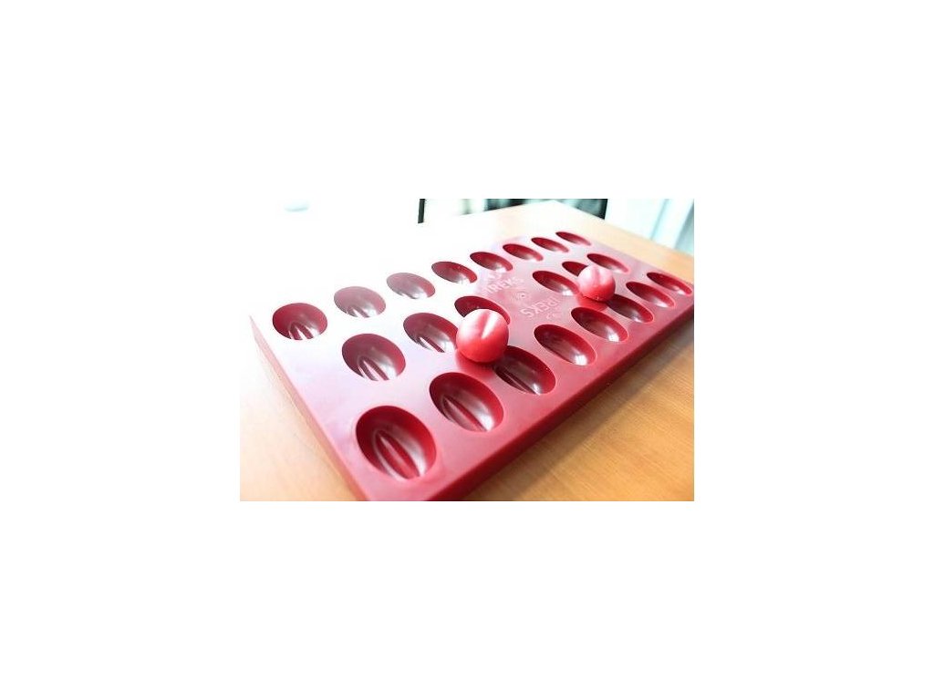 Tvrzený plast je vhodný do myčky nádobí a velkou výhodou je ta skutečnost, že se při výrobě k formě nelepí a díky tomu se natvarovaná zrna lehce vyklopí z formy ven. Velikost zrna: 3 x 4,2 cm. Velikost formy: 33 x 17 cm. Na formě 22 ks zrn.Doplňkové parametry