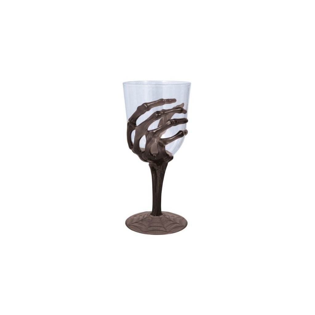 Plastová sklenka na víno Halloween - Black Skeleton 18,5 cm. Plastová sklenka na vino s ražbou ruky kostlivce, bude nepostradatelným doplňkem každé Halloweenské party, tématické party nebo strašidelné party. Je také velmi praktická, po použití jednoduše umyjete a můžete jej znovu použít. Nevkládejte do myčky. Rozměr: 18,5 cm Balení: 1 ks.Doplňkové parametry
