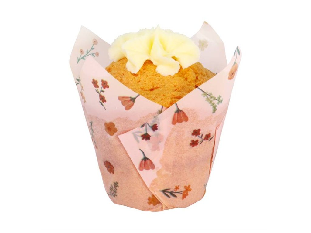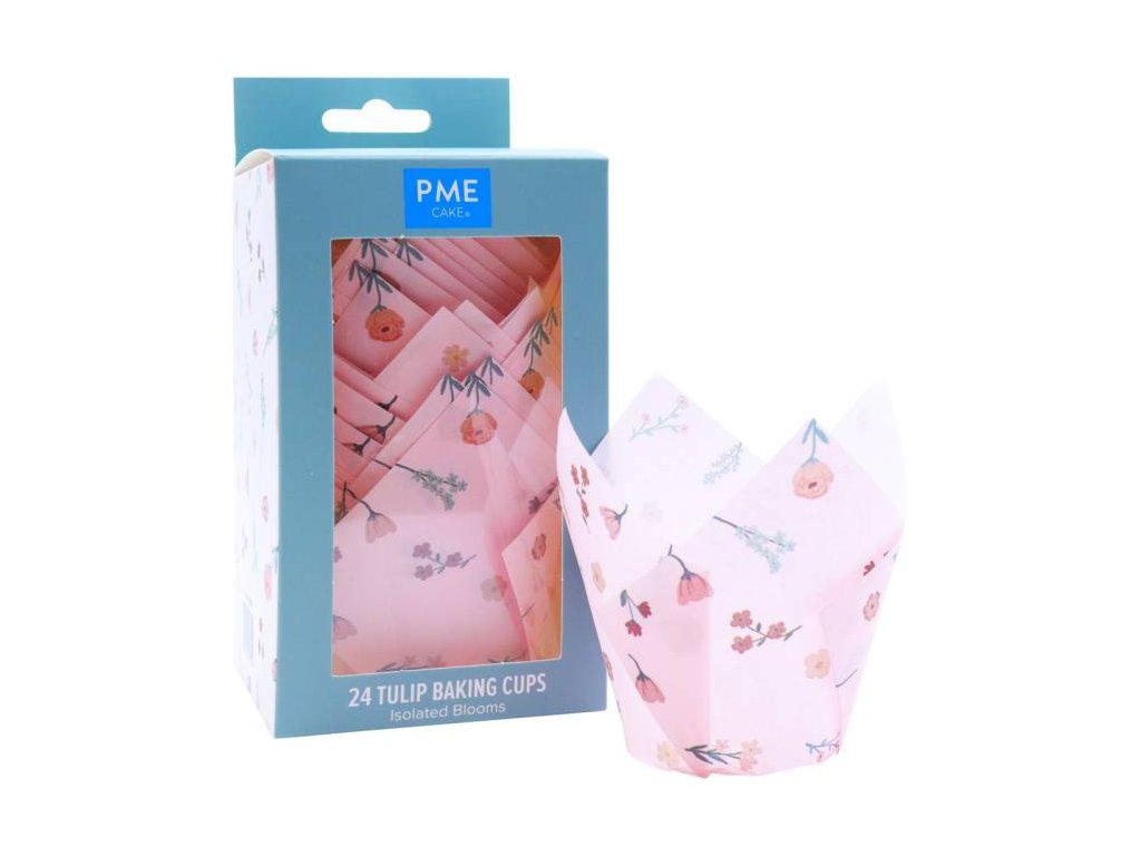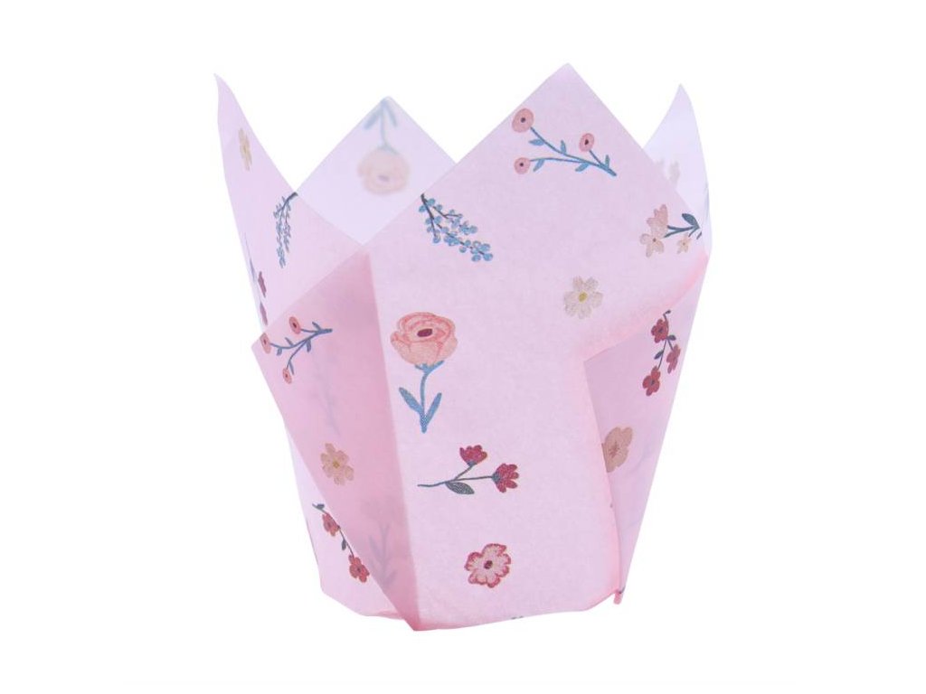 PME košíčky na muffiny Tulip růžové s květinami (24 ks) ▹