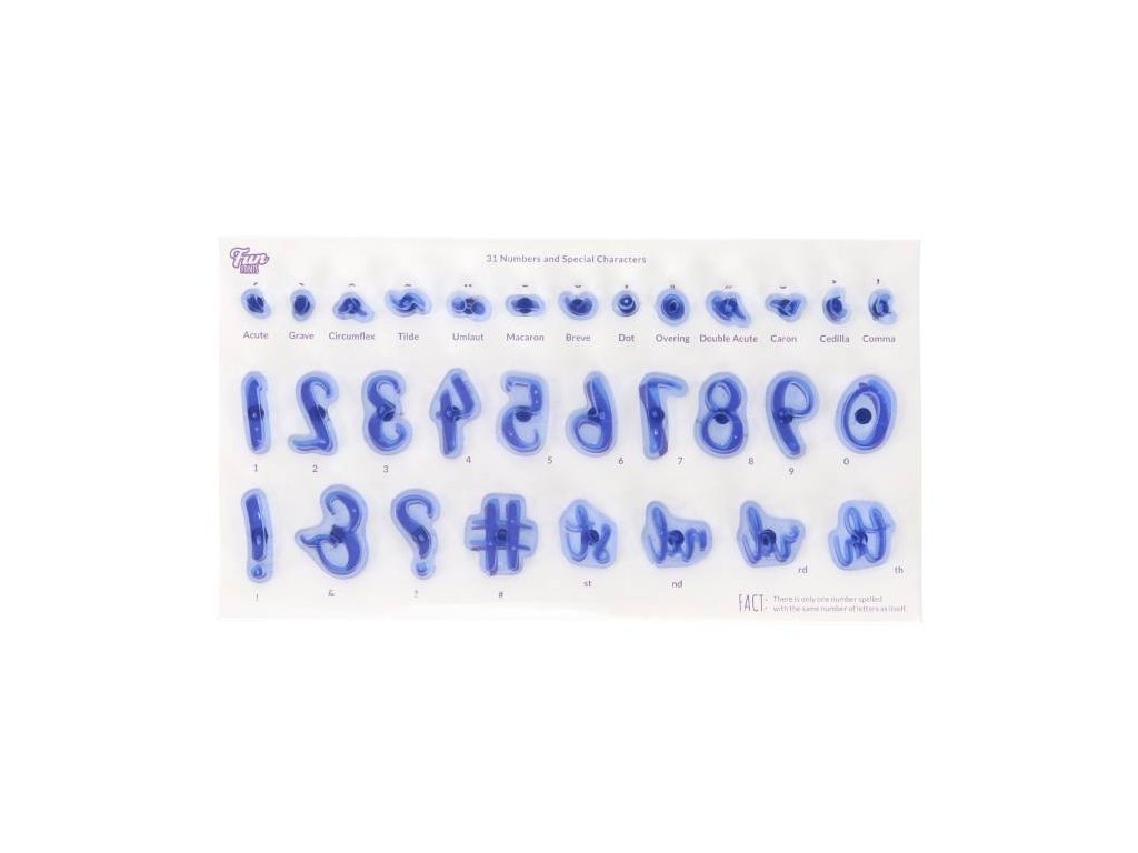 Díky této sadě otiskovačů jednoduše vytvoříte na svém dortu jakoukoliv zprávu. Rozměr číslic: 2 - 3 cm Rozměr znaků: 1 - 2 cmDoplňkové parametry
