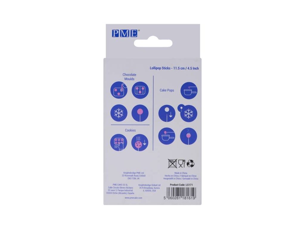 PME Špejle na lízátka bílé 11,5 cm (50 ks) ▹