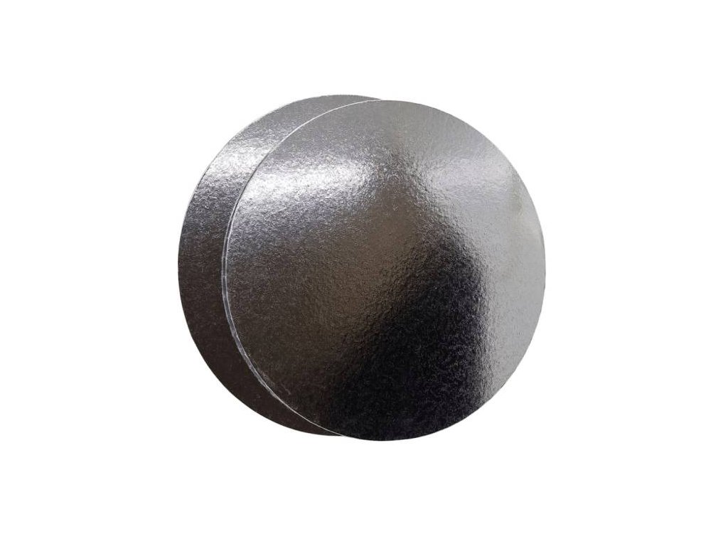 Podložka pod dort MDF TENKÁ stříbrná kruh 25 cm 10" (1 ks) ▹