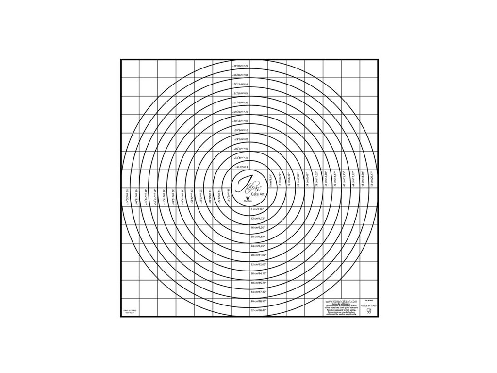 Praktická pogumovaná protiskluzová podložka na rozvalování potahovacích hmot s vyznačenými průměry od 8 až do 52 cm.