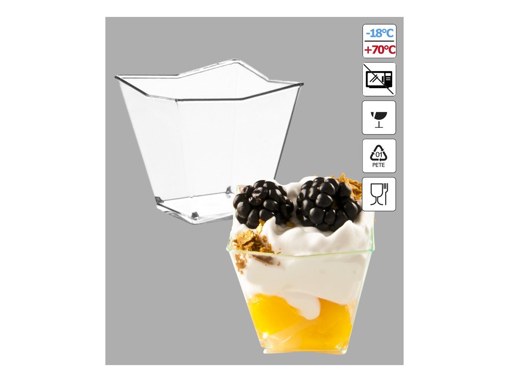 Průhledný pohárek na elegantní dezerty, pro jednorázové použití. Možnost dokoupit víčko objednávkový kód POL426-CB