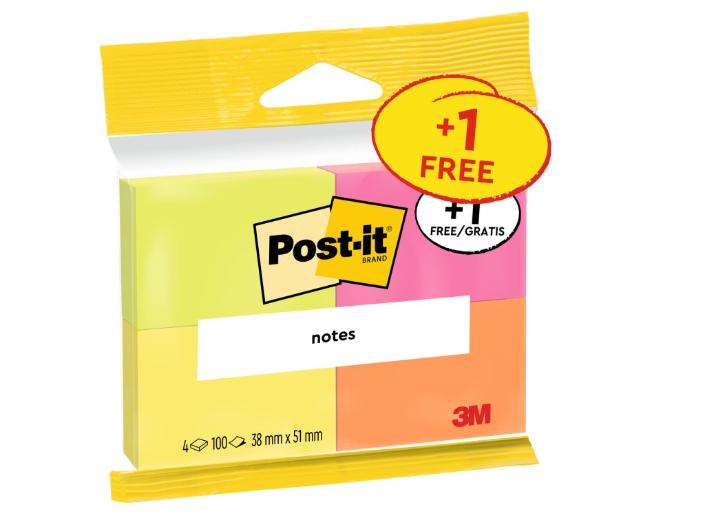 POST-IT Bloček 51 x 38 mm 100 listů 3 + 1 ks