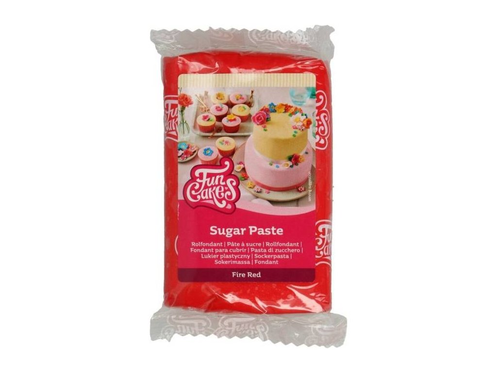 FunCakes potahový fondán je mimořádně flexibilní a snadno použitelný díky své měkké struktuře. Fondán tvrdne po použití, ale nepraská. Barva je červená.