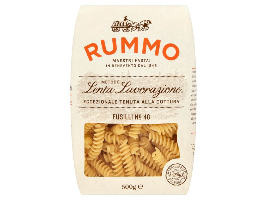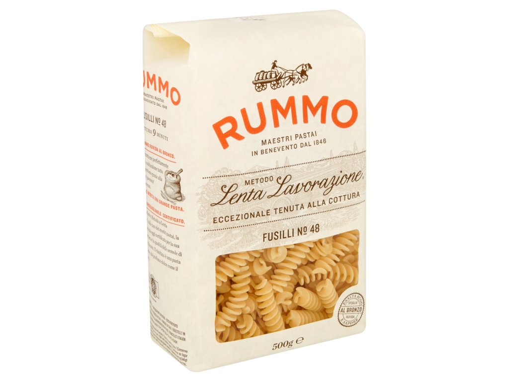 Nakupovat potraviny, drogerii a další potřeby pro domácnost online se vyplatí. Náš online supermarket Terunka.cz, toho má v kategorii: mnohem více. Prohlédněte si celou naší nabídku a ušetřete svůj čas i peníze.RUMMO Fusilli nb.48 semolinové 500 g za skvělou cenu, máme skladem.