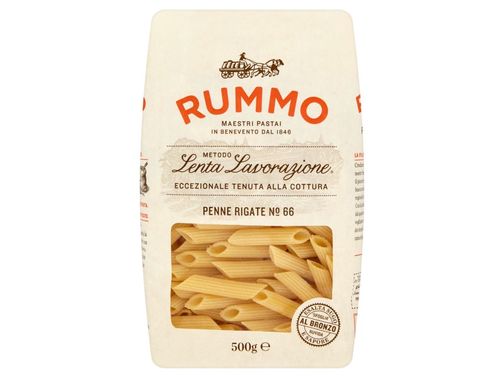 Nakupovat potraviny, drogerii a další potřeby pro domácnost online se vyplatí. Náš online supermarket Terunka.cz, toho má v kategorii: mnohem více. Prohlédněte si celou naší nabídku a ušetřete svůj čas i peníze.RUMMO Penne Rigate nb.66 semolinové 500 g za skvělou cenu, máme skladem.