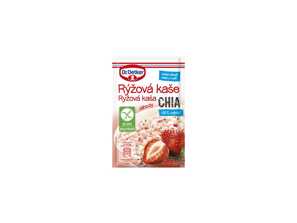 NUTRIČNÍ HODNOTY produktu - Dr. Oetker Rýžová kaše Chia/ Jahody bez lepku 50 g / 100g výrobku