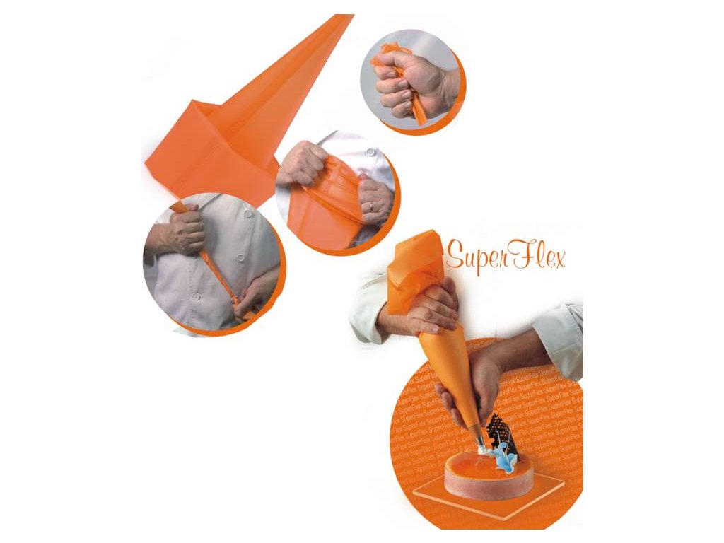 Nový silikonový Superflex má hladký vnitřní povrch, který usnadňuje vytlačování krémů, šlehačky, náplní. Zdrsněný venkovní povrch