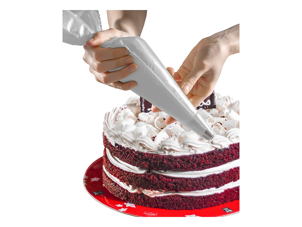 Jednorázový, průhledný, cukrářský sáček z polyethylenu. Velmi pevný, o tloušťce 80 mikronů je vhodný pro obzvláště namáhavý provoz.