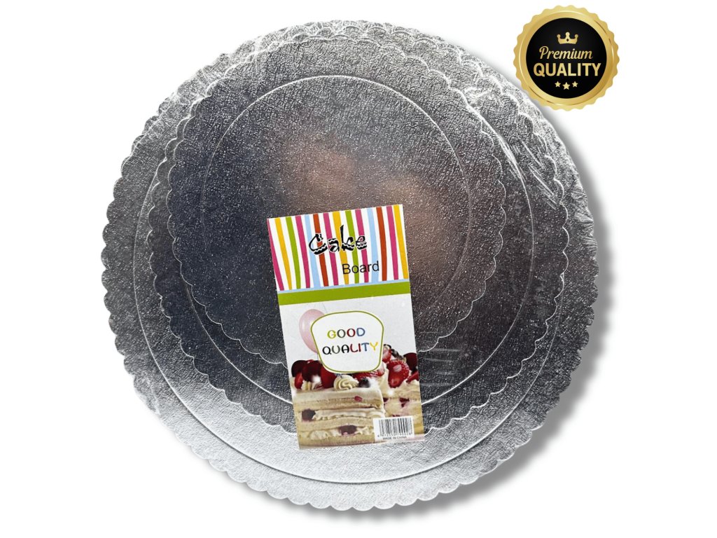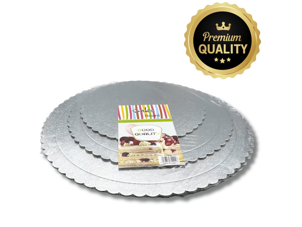 Oblíbené 2 mm dortové podložky z kartonu, potažené stříbrnou folií se vzorem