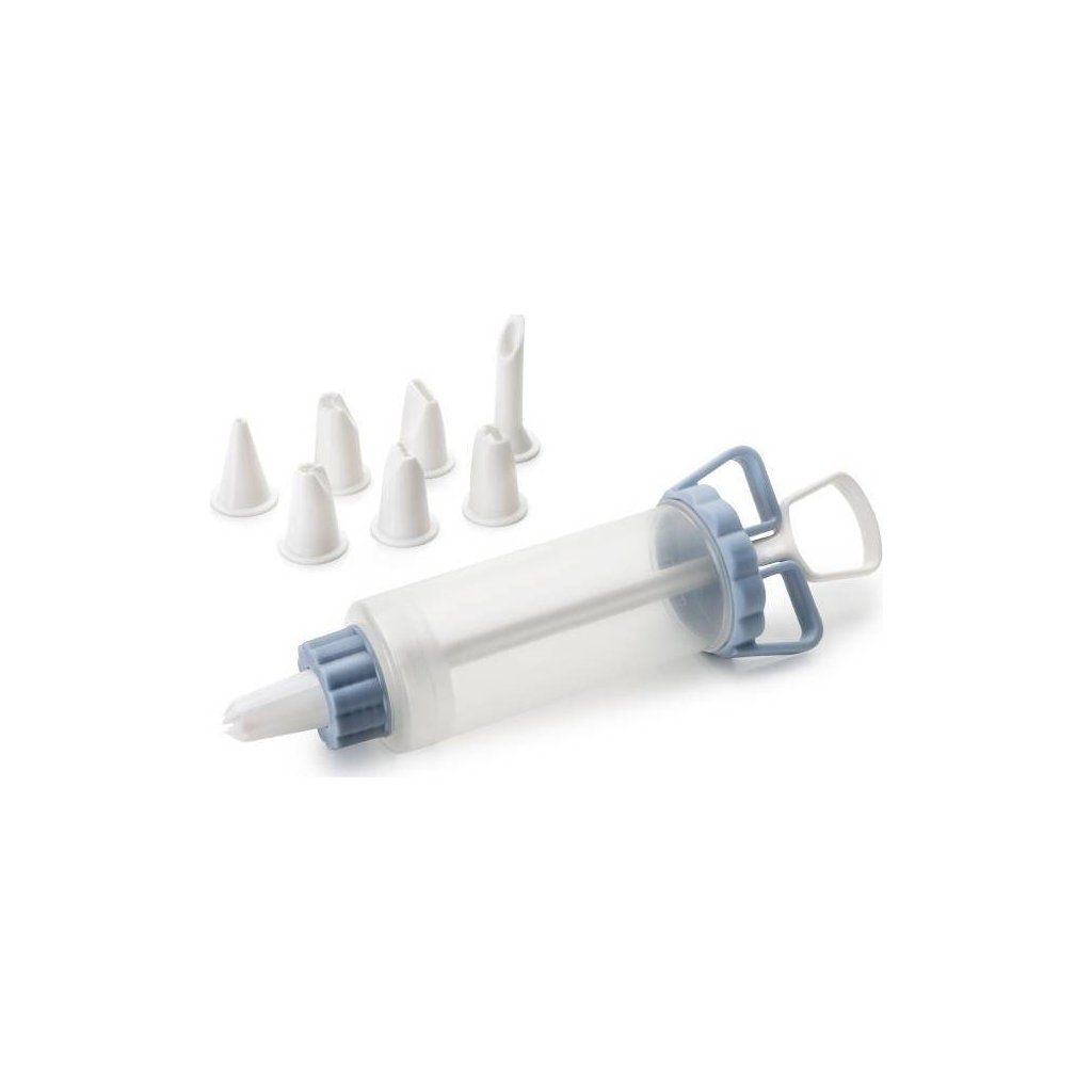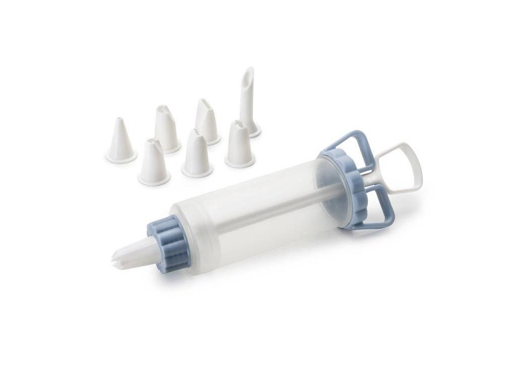 Zdobící pistole s osmi různými špičkami na vytváření dekorací z krému a polevy.Doplňkové parametry