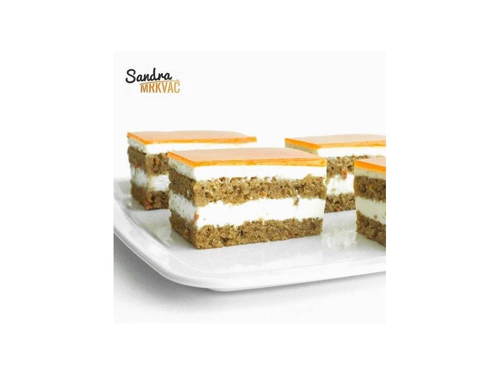 Směs pro přípravu mrkvových korpusů, dobře se kombinuje s čokoládou, ořechy, kokosem a sušenými plody. Jednoduchým způsobem připravíte zajímavé dezerty. Složení: pšeničná mouka, cukr, sušená mrkev (5,5 %), bramborový škrob, kypřící látka (E450, E500), kakao se sníženým obsahem tuku, skořice, sůl, zahušťovadlo (E466), emulgátor (E481), barvivo (E160a), stabilizátor (E516), aroma (obsahuje laktózu), regulátor kyselosti (E341) Dávkování: 1000 g Sandra Mrkváč, 350 g vaječného tekutého obsahu, 350 g vody, 350 g oleje Nutriční hodnoty ve 100 g: energie 1540 kJ/369 kcal, tuky 0,9 g (z toho nasycené 0,3 g), sacharidy 81,2 g (z toho cukry 47,6 g), vláknina 2,7 g, bílkoviny 6,3 g, sůl 0,9 gDoplňkové parametry