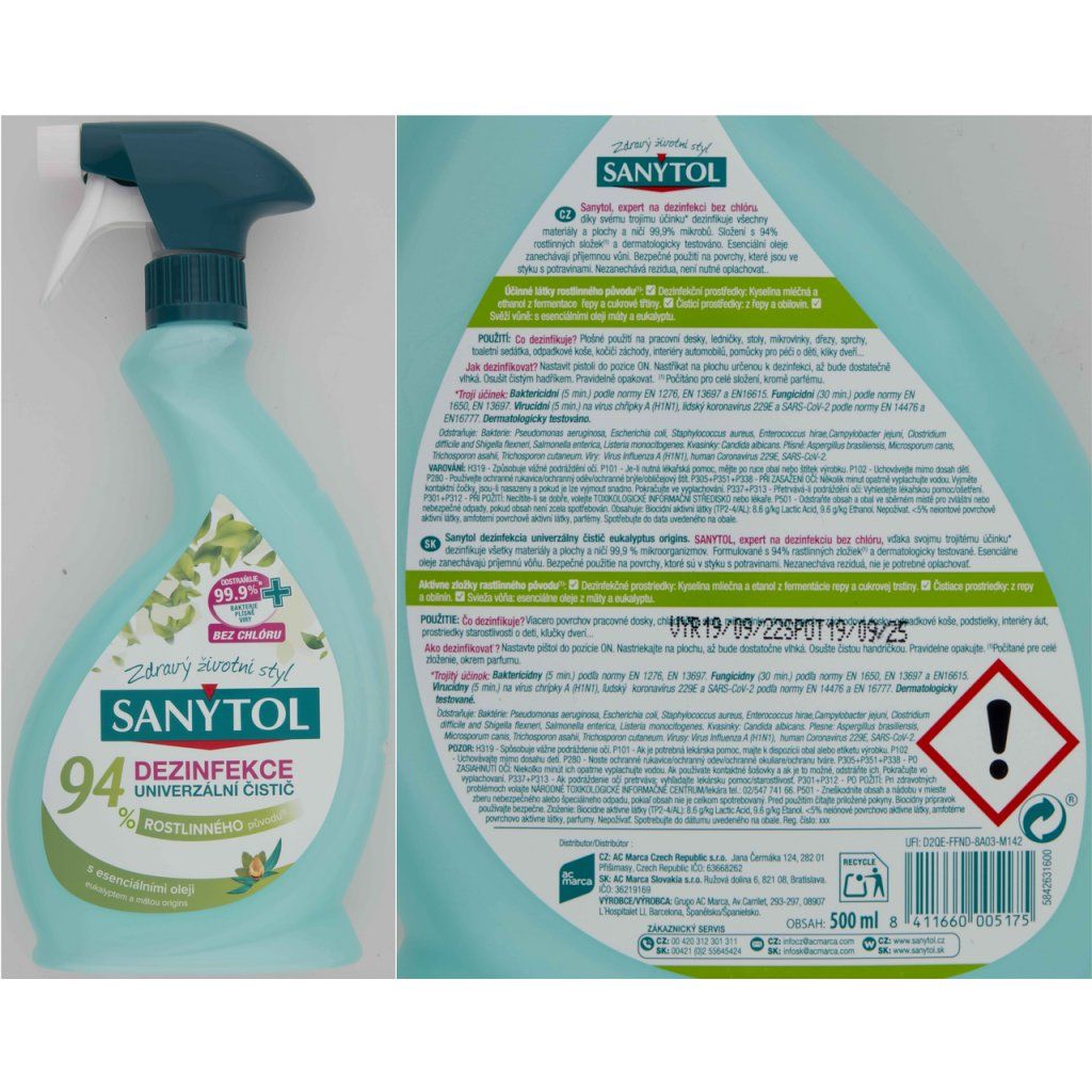 SANYTOL Dezinfekce 94% čistící sprej 500 ml