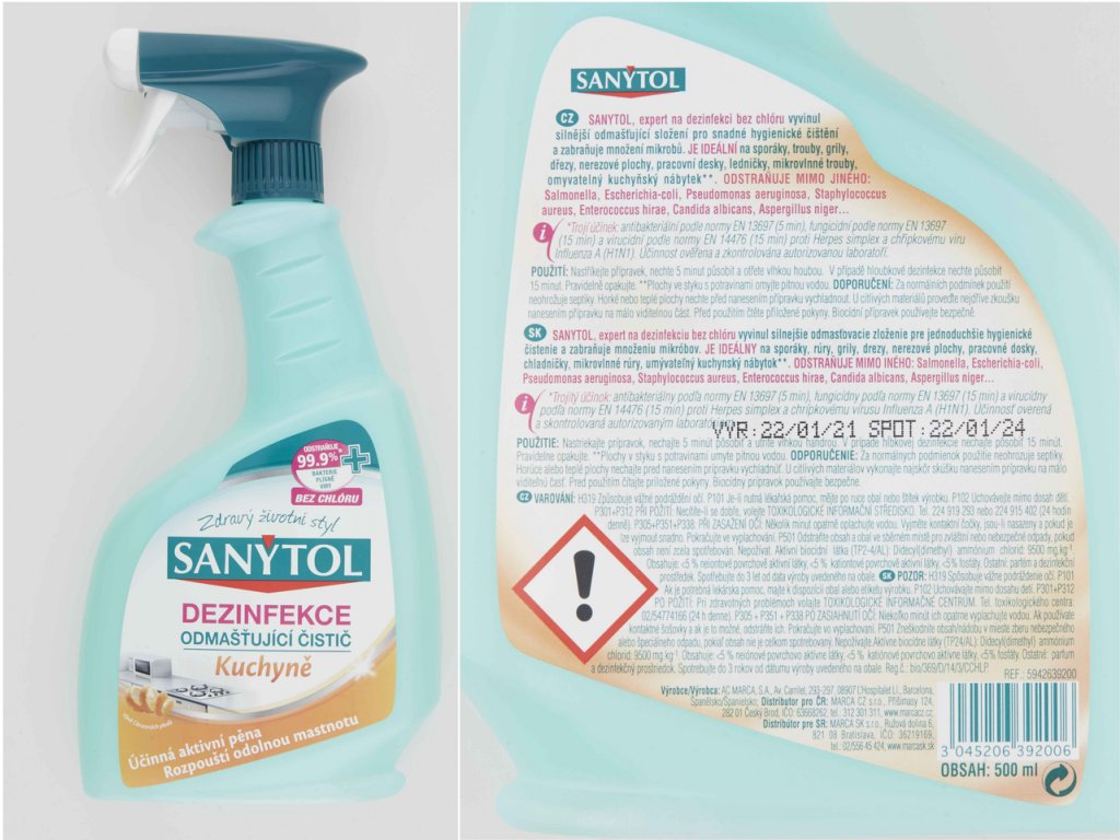SANYTOL Dezinfekce odmašťující čistič kuchyně 500 ml