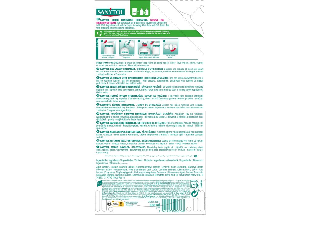 SANYTOL Doypack Mýdlo tekuté antibakteriální 95 % hydratující 500 ml