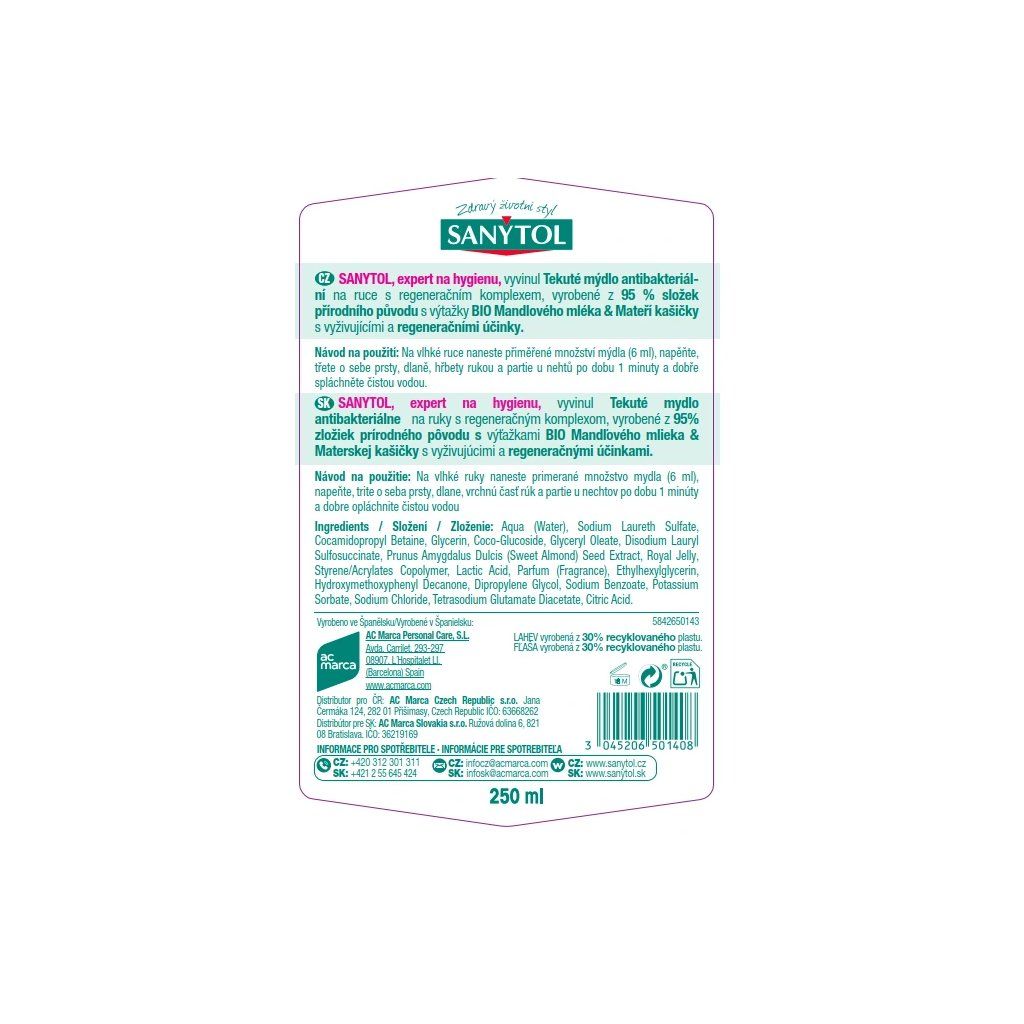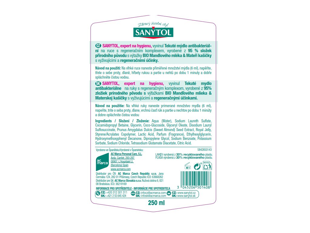 SANYTOL Mýdlo tekuté antibakteriální výživné 250 ml